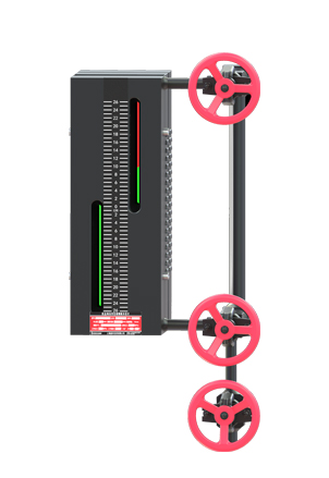 4.無盲區(qū)水位計(jì)是在上述優(yōu)點(diǎn)基礎(chǔ)上,研制出在一塊表體上并列錯(cuò)開設(shè)置兩排窗口,通過光學(xué)原理轉(zhuǎn)換達(dá)到在水位計(jì)正前方±3°角范圍內(nèi)觀看水位計(jì)的兩排窗口,可同時(shí)觀察到兩窗口紅綠變化情況,且紅綠分明、界面清晰,并可在水位計(jì)可視范圍內(nèi)無盲區(qū)連續(xù)監(jiān)視。
