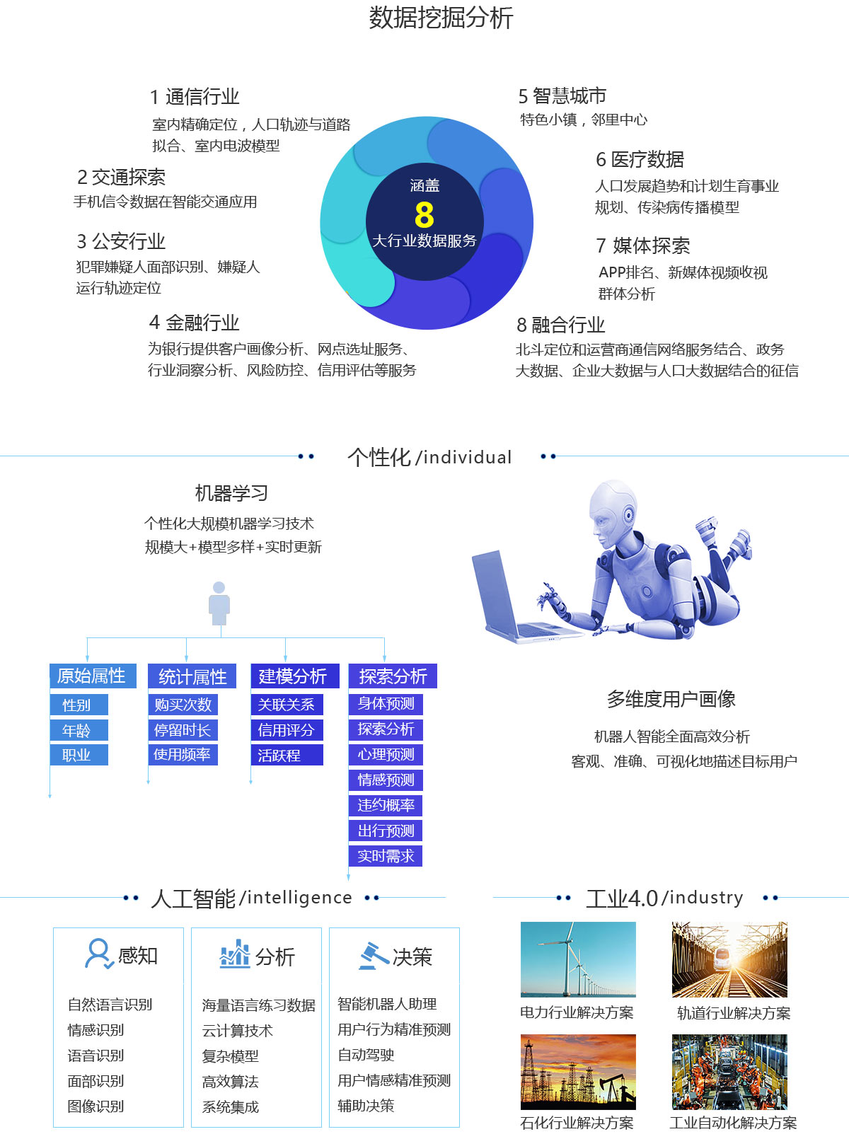 適用于任何應(yīng)用場(chǎng)景,從個(gè)人數(shù)據(jù)到互聯(lián)網(wǎng)數(shù)據(jù),可根據(jù)業(yè)務(wù)需要靈活調(diào)整分析模型,多維度整合數(shù)據(jù),將數(shù)據(jù)標(biāo)簽化完成畫(huà)像,提升數(shù)據(jù)自身價(jià)值。