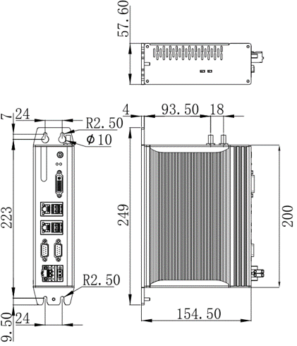 尺寸 57.6mm x 200mm x 154.5mm (W x H x D)