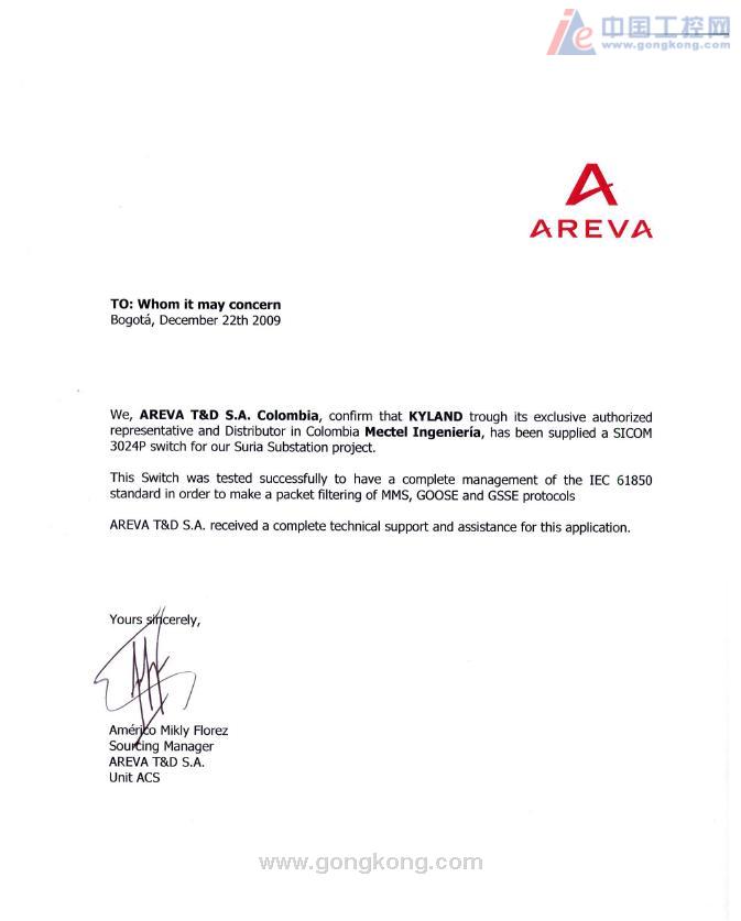 全球最大的核電企業(yè)阿?,m集團(tuán)使用我公司獲得了KEMA認(rèn)證的SICOM3024P系列產(chǎn)品,在電網(wǎng)中使用后產(chǎn)品性能穩(wěn)定、品質(zhì)優(yōu)越,特給我公司頒發(fā)使用合格證書,并將長期使用我公司的產(chǎn)品。