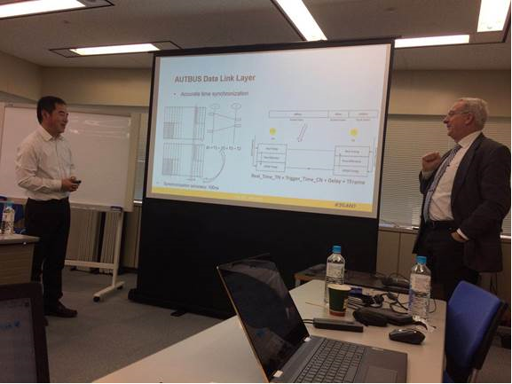 2019年1月14日,在東京的MT9國際工作組會議上,介紹了我司首創(chuàng)的高性能總線標準提案(以下簡稱AUTBUS),該提案得到了MT9主席Winkel先生和與會專家的高度評價和認可。Winkel主席聽取了與我司與會代表陳凡民先生講解和答疑后,立即為AUTBUS分配了標準號:IEC61158- Type 28(類型編號)、IEC61784- CP 22(通信配置規(guī)范);下圖為東京MT9會議的現(xiàn)場。