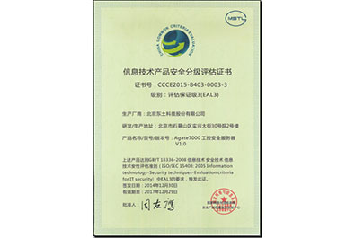 東土科技Agate7000系列工控安全服務(wù)器V1.0正式通過國家網(wǎng)絡(luò)與信息系統(tǒng)安全產(chǎn)品質(zhì)量檢驗中心分級評估EAL3+級安全評測和專家驗收,并獲得《信息技術(shù)產(chǎn)品安全分級評估證書,級別:EAL3》。該級別的測評是目前為止國內(nèi)同類產(chǎn)品中的最高安全級別, EAL3級認(rèn)證是國