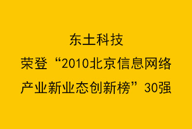 東土科技榮登“2010北京信息網(wǎng)絡(luò)產(chǎn)業(yè)新業(yè)態(tài)創(chuàng)新榜”30強(qiáng)