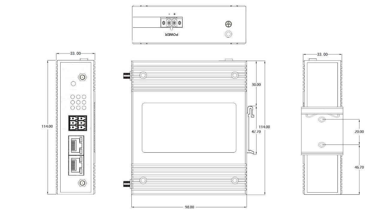 | 供電要求 | 輸入電壓:12 ~ 36 VDC, 推薦 24 VDC 接入端子:2 芯插拔式接線端子 功率:<14W 過載保護(hù):支持 反接保護(hù):支持 |