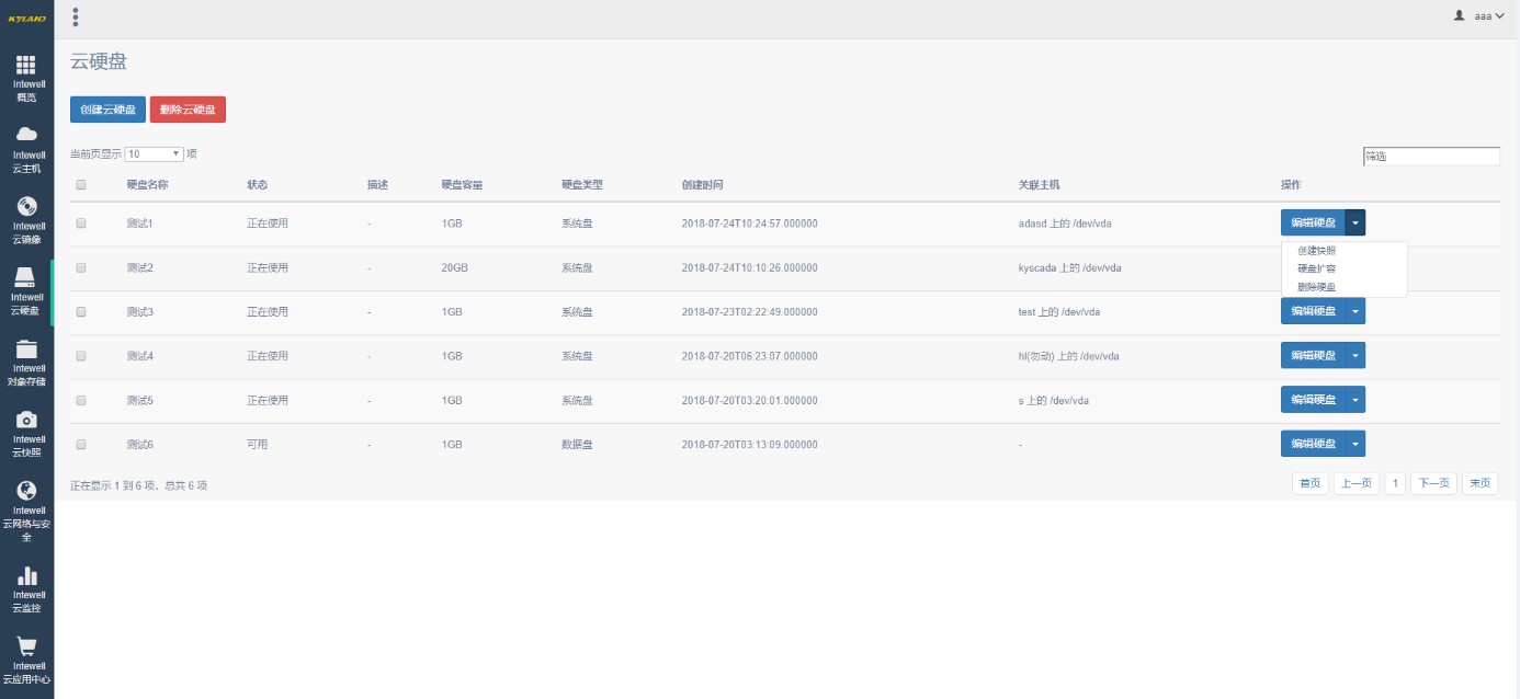 | 云硬盤 | 支持創(chuàng)建、刪除云硬盤 支持掛載云硬盤到云主機(jī) 支持云硬盤快照 支持云硬盤導(dǎo)出、備份、恢復(fù) 支持云硬盤擴(kuò)容 支持云硬盤QoS 支持存儲高可用 ![]() |