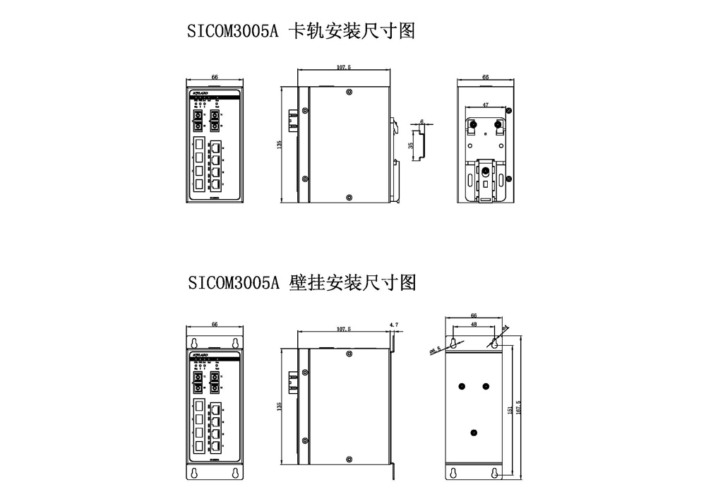 2M4T=2×100Base-FX,多模光口;4×10/100Base-T(X) RJ45電口