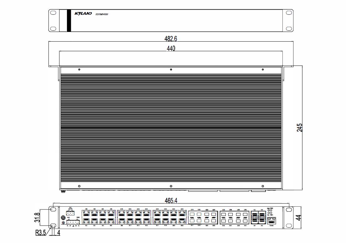 | 機(jī)械結(jié)構(gòu) | 外殼 金屬材質(zhì) 散熱方式 自然冷卻,無(wú)風(fēng)扇 防護(hù)等級(jí) IP40 尺寸 440mm×44mm×245mm(W×H×D) 重量<4kg 安裝方式 19英寸1U機(jī)架式 |