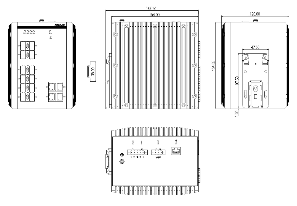 | 管理與維護(hù) | 支持Console, Telnet, WEB管理方式 支持SNMP v1/v2c/v3, 支持DES和AES加密,可通過(guò)Kyvision集中管理 支持通過(guò)FTP/TFTP/HTTP/HTTPs進(jìn)行軟件升級(jí)和配置的上傳下載 支持IP/MAC沖突告警, 電源告警, CPU/內(nèi)存利用率告警,端口link告警,端口流量告警,端口丟包率及CRC告警,環(huán)告警,接收及發(fā)送光功率告警 支持RMON(統(tǒng)計(jì)組,歷史組,告警組,事件組) 支持Syslog,可本地保存或上傳至日志服務(wù)器 支持端口鏡像和遠(yuǎn)程鏡像端口 支持LLDP和LLDP MIB(802.1ab) 支持內(nèi)部硬件自檢 支持DDM光功率檢測(cè)功能 支持MTU配置 支持Ping, Trace route |